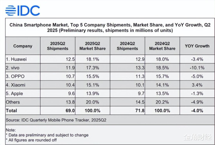 更值得警惕的是,其行业老三的位置正被小米步步紧逼。同期,小米出货量从1010万部增至1040万部,与OPPO的差距从120万部迅速缩小至30万部,市场份额仅差0.4%。
